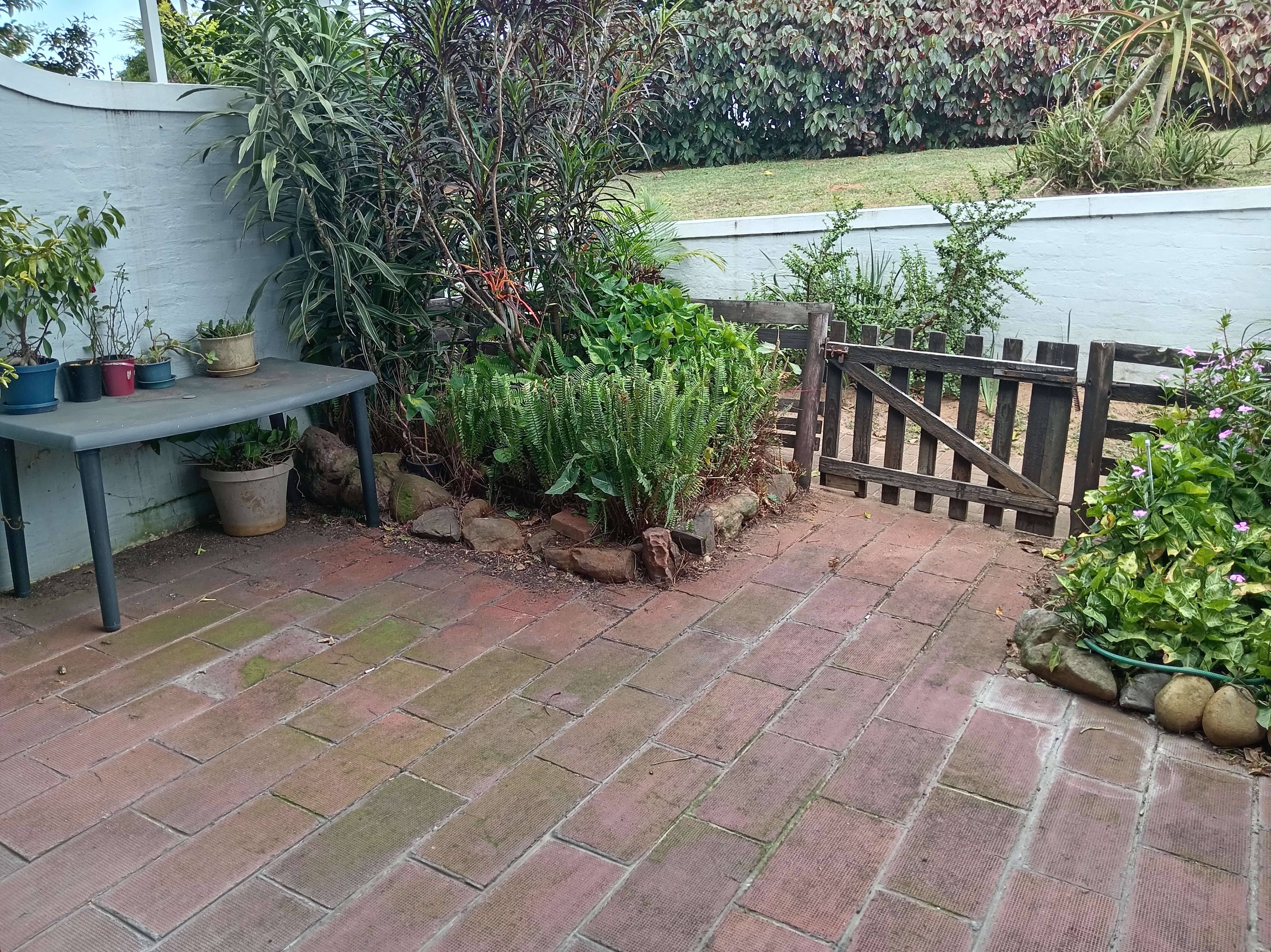 End-unit two-bedroom, two-bathroom duplex offering privacy and convenience. The open-plan lounge opens onto a small private outdoor area, while the kitchen is separate and well laid out. A guest bathroom is located downstairs, with both bedrooms situated upstairs via a wooden staircase. The unit has been recently painted throughout and features new floor tiles in the bedrooms.